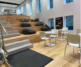 Here in the library common space we can see a Pan-African flag which serves as a marker of freedom, pride, and political power of Black Americans during black history month! Our library is an environment that helps students gain awareness of things they may not cover in class. The library also has a showcase of Indigenous initiatives as well. It showcases books that highlight and promote Indigenous cultures! Initiatives like this are what makes Bishop’s have that liberal education and progressive community feel!